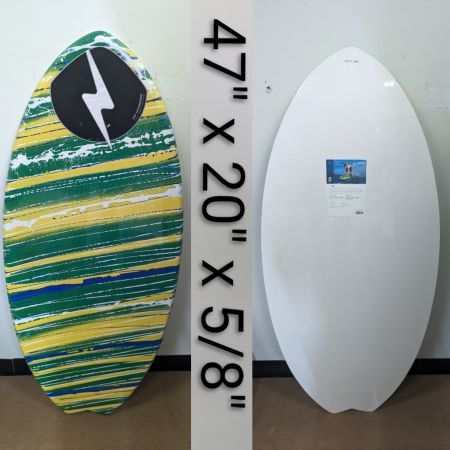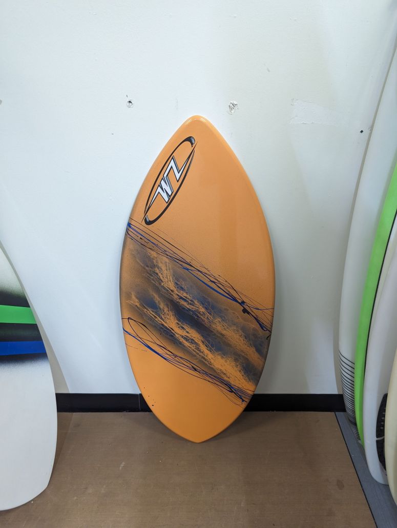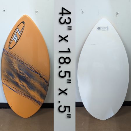 The Rip Skimboard sports a 1/2″ core thickness, blunt nose with a rounded pin tail, best for flat tricks