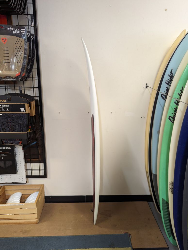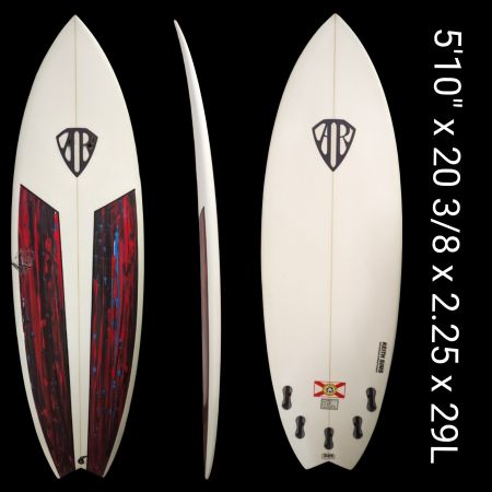 5’10” AR Hippo, Single Concave, vee off the tail, round tail, Very light, Quad/Tri FCS, If your looking to get better at surfing this is the board for you with the bigger and wider outline for more stability and also a rail reduction on the tail for sharper/more controlled turns.