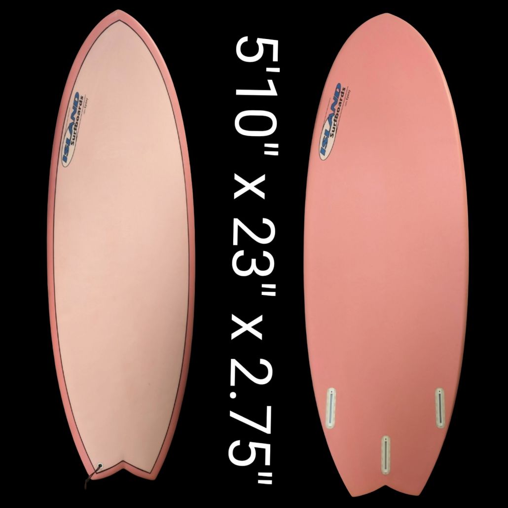 5’10” Island Surfboards, Fish, EPS, Tri Futures, Flatter Rocker, Wider Outline, Swallow Tail, Single Concave, Slight V off the Tail, Waves 2-4ft+