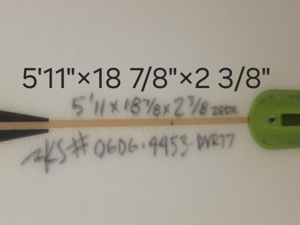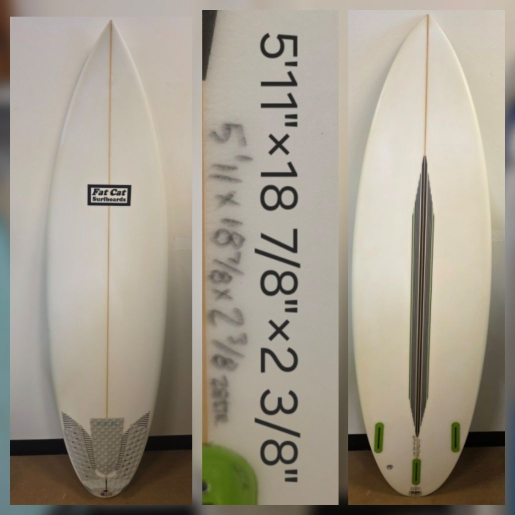 5’11” Fat Cat DVR77, PU, Advanced rocker, rounded tail, single concave, vee off the tail, waves 3-5ft+