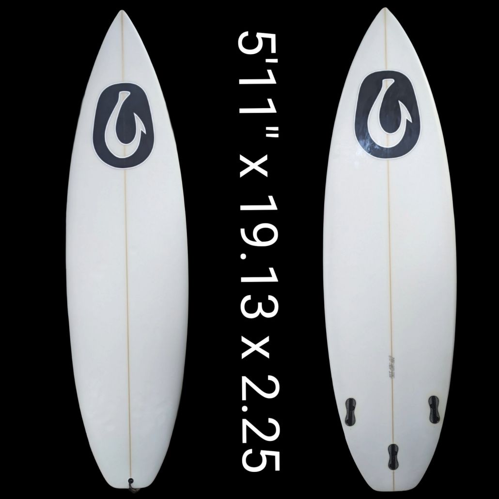 5’11” Hook Performance, PU, Tri FCS 2, Single concave, slight vee off the tail, Rounded squash tail, Narrower outline, Waves 3-5ft+