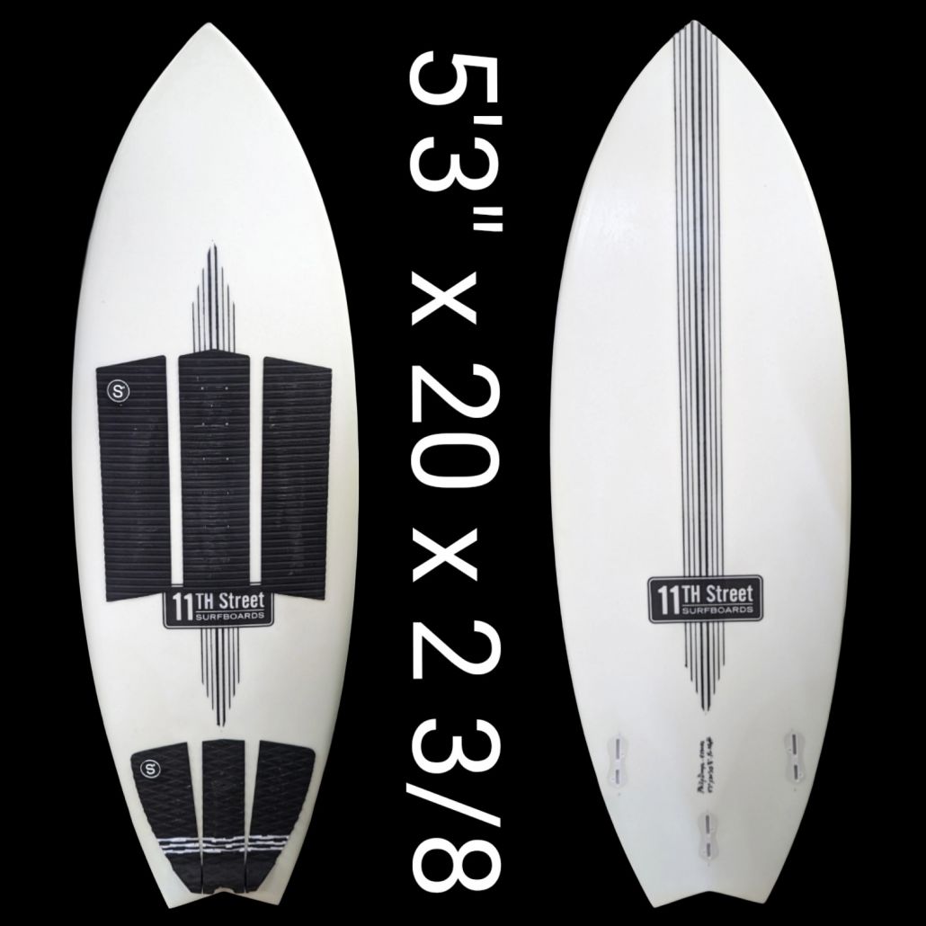 5’3″ Gordo, Fish, Swallow Tail, Double Concave, Wider Outline, Tri FCS2, V Off The Tail, Flatter Rocker, 2-4ft Waves