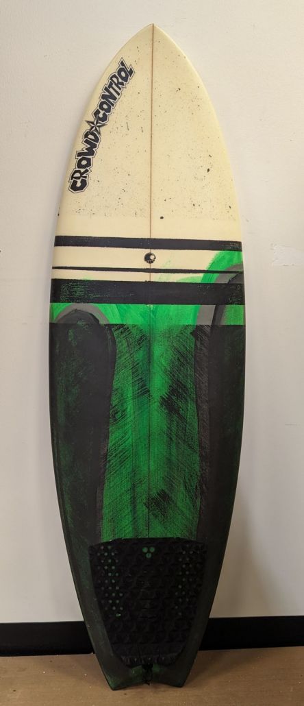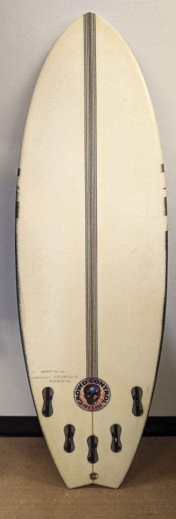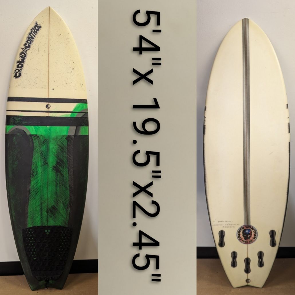 5’4″ Crowd Control, Hybrid, Quad/Tri FCS2, Single Concave, Slight V off the Tail, Slightly Wider Outline, Swallow Tail, Waves 2-4+