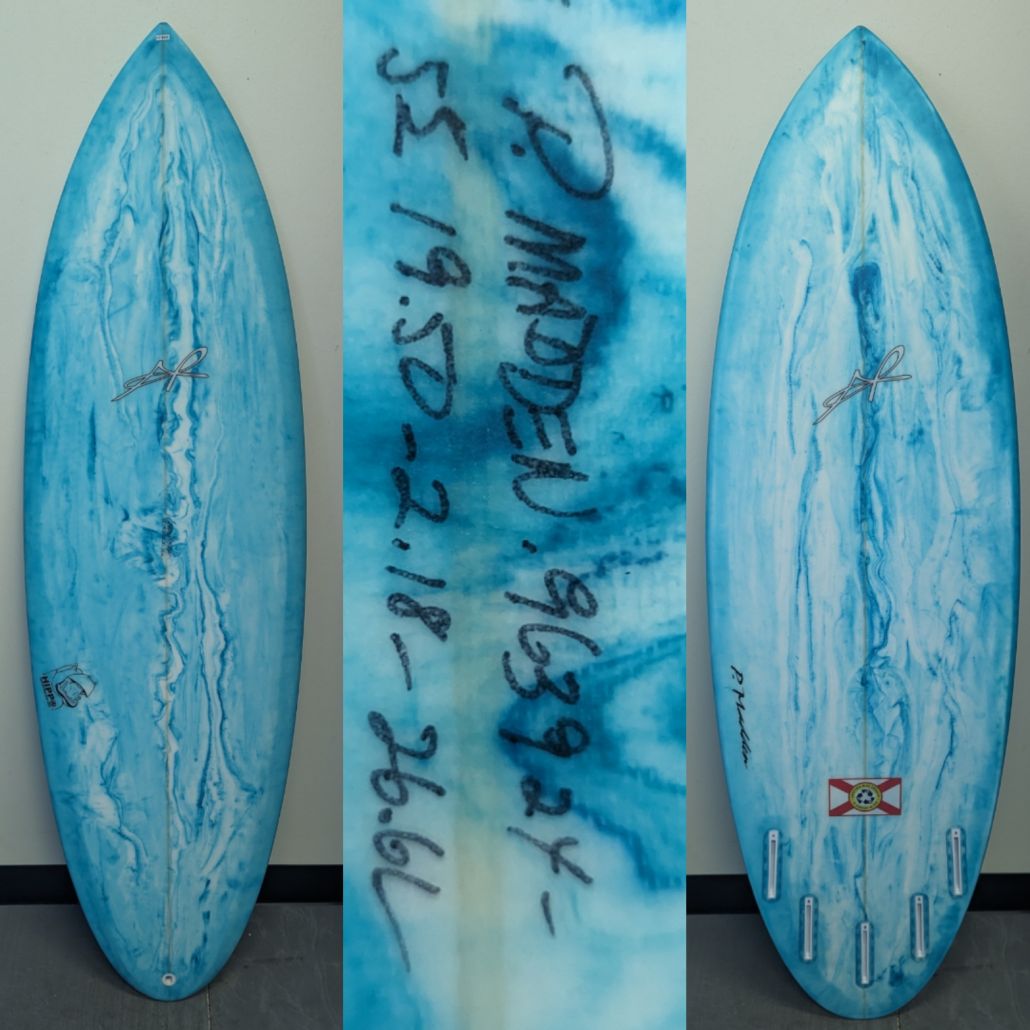 AR Hippo, 5’5″, Quad/Tri Futures, slightly wider outline, EPS, Double concave, vee off the tail, rail reduction system, waves 2-4ft+