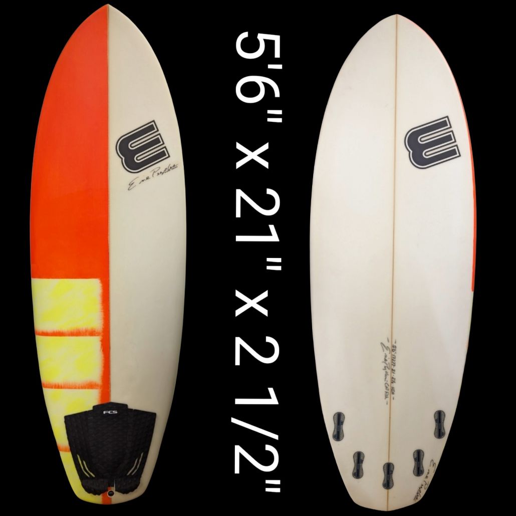 5’6″ Erie Peeples, Hybris Slight Single concave, Slight vee off the tail, Wider nose, Squash Tail, Quad/Tri FCS 2, Waves 2-4ft+