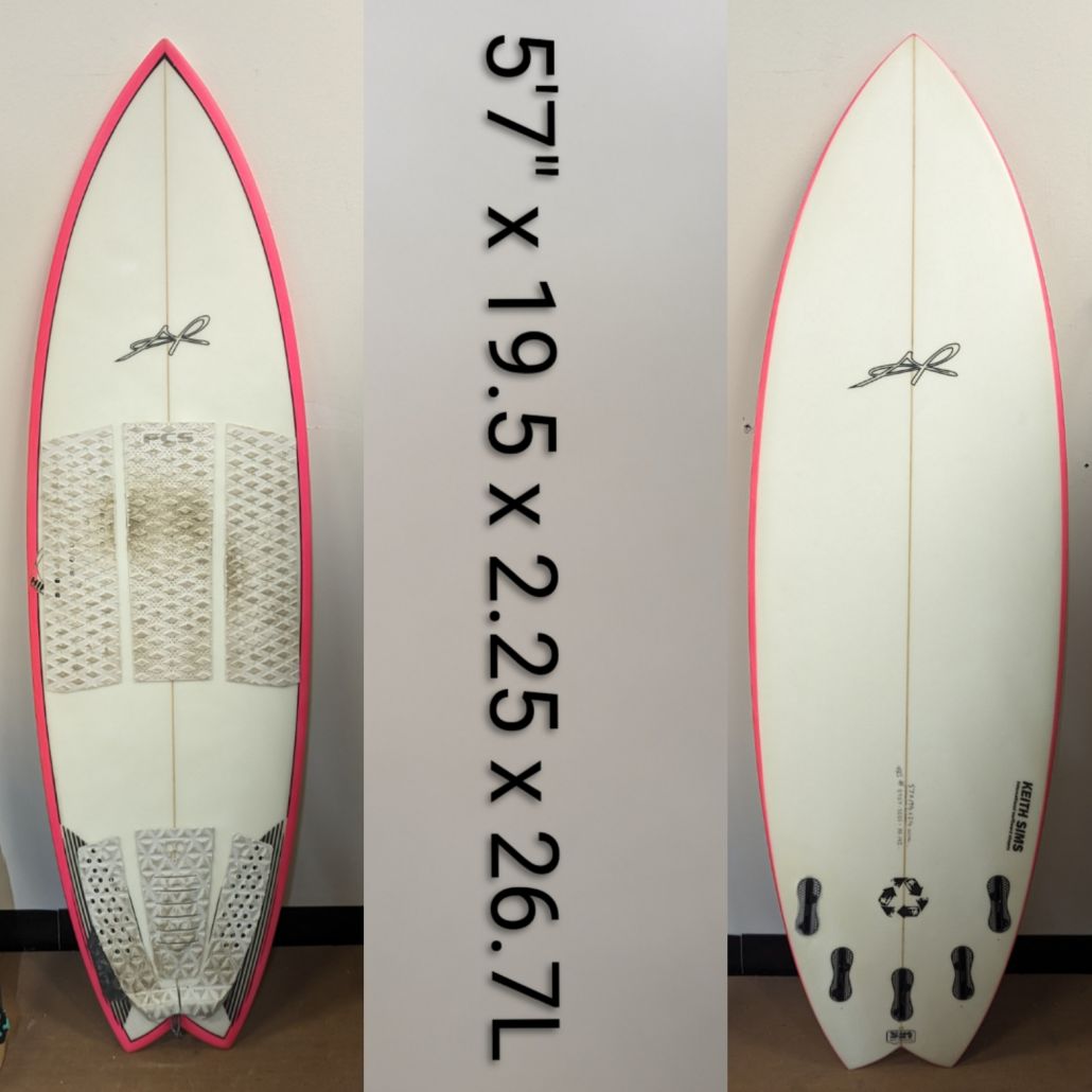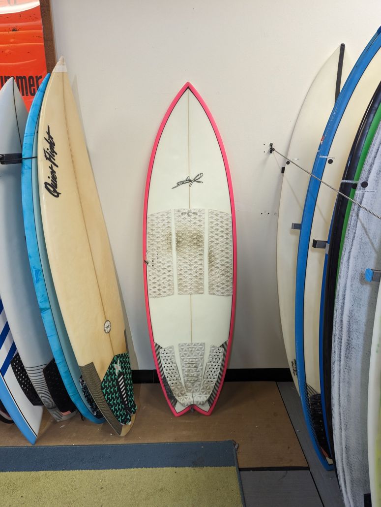AR Hippo, 5’7″, Quad/Tri Futures, slightly wider outline, EPS, Double concave, vee off the tail, rail reduction system, waves 2-4ft+