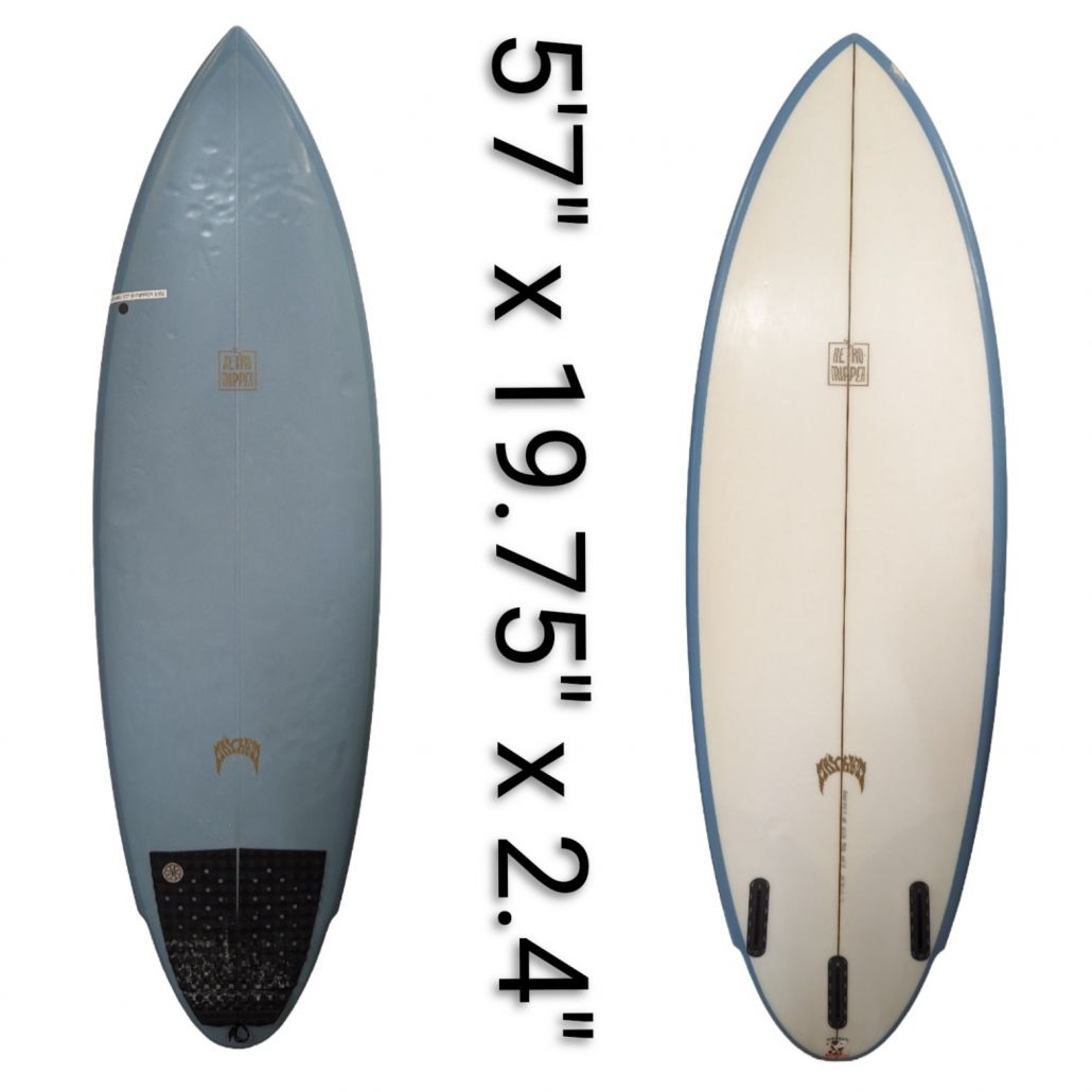 The 5’7″ Lost Retro Ripper has a flat, stable deck with full, steep, low apex rails, Low entry rocker with accelerated tail rocker. Fast out the gate, yet turns tight in the pocket, Rolled vee in nose, flat under front foot, and a deep double concave vee cutting through the tail rocker, winged round pin tail, Tri Future fin boxes, best in 3-6ft, PU