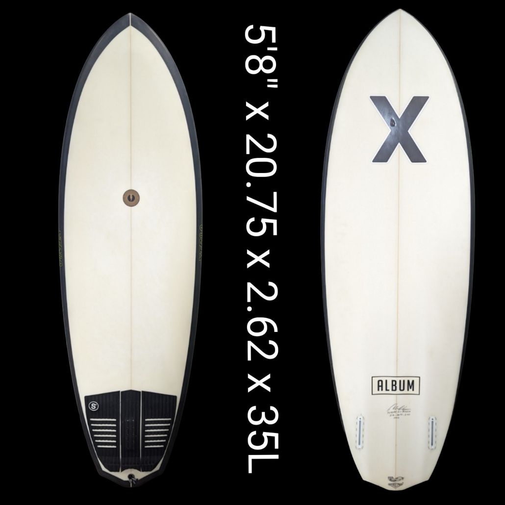 5’8″ Album Twin Fin, Twin Futures, EPS, double concave, vee off the tail, wider nose, waves 2-4ft+