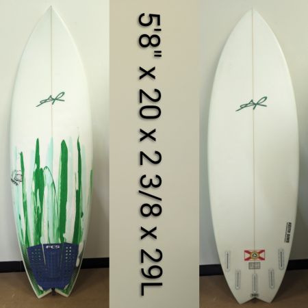 AR Hippo, 5’8″, Quad/Tri Futures, slightly wider outline, EPS, Double concave, vee off the tail, rail reduction system, waves 2-4ft+