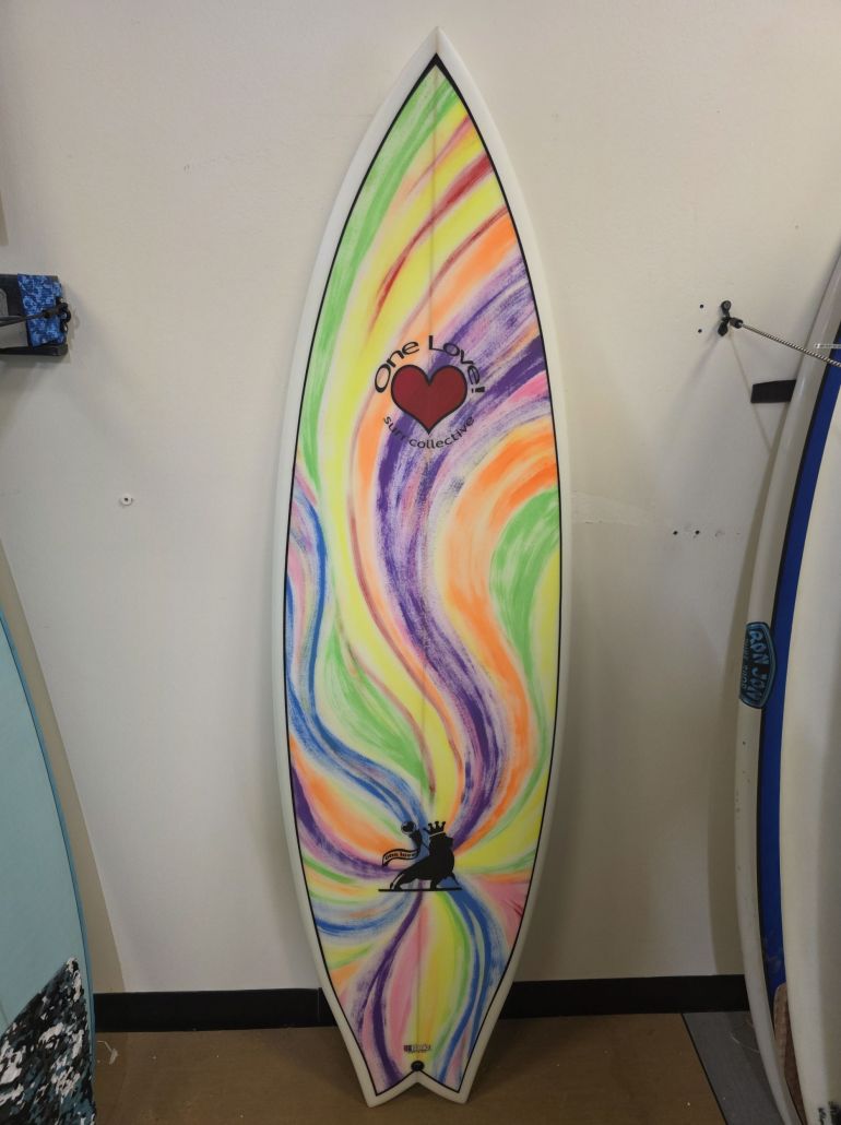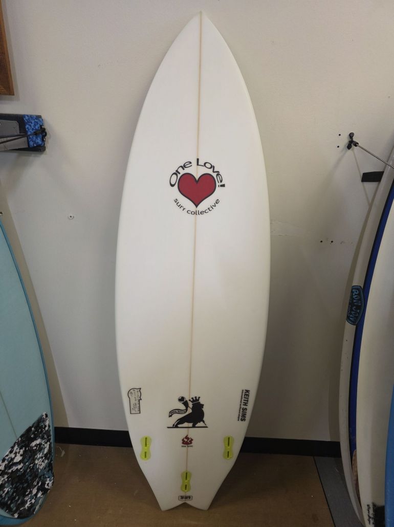 5’8″ Fat Cat One Love, EPS, single concave, slight vee off the tail, Tri FCS 2, cutaway swallow tail, advanced rocker, waves 3-5ft+
