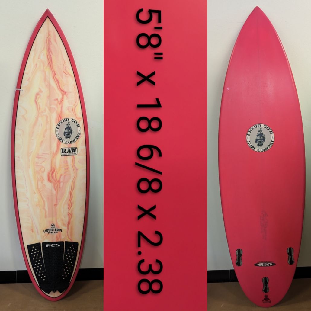 5’8″ Liquid Soul Performance, EPS, Tri FCS 2, Single concave, slight vee off the tail, Round tail, Advanced rocker, Waves 3-5ft+