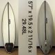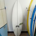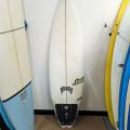 - A deeper concave in the rear third of the board: The rail rocker transitions from a modest forward concave, to a deeper, more-curvy, rail line through the front fins. It then accelerates upward to a slight vee behind the rear fin and out the tail. There is a good amount of double concave through the tail, adding lift and helping the water squirt through and release.