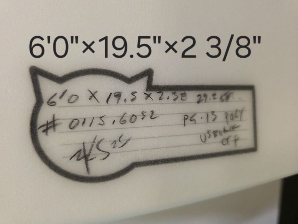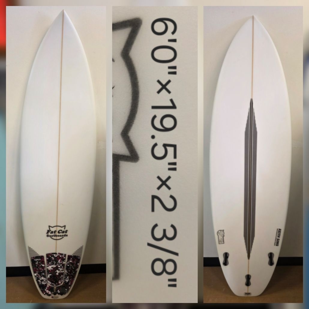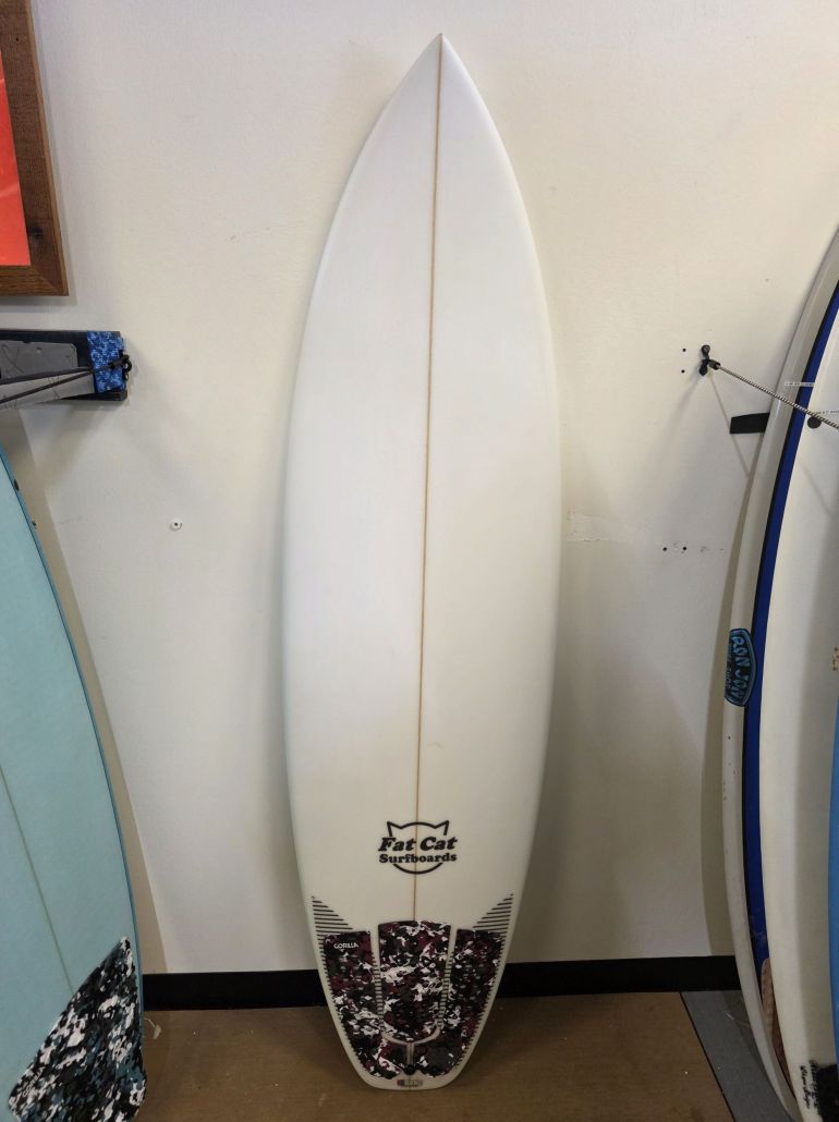 6’0″ Fat Cat PG-13, PU, Tri FCS 2, single concave, vee off the tail, advanced rocker, rounded squash tail, waves 3-5ft+