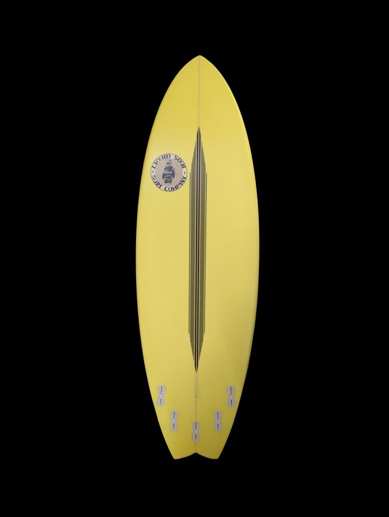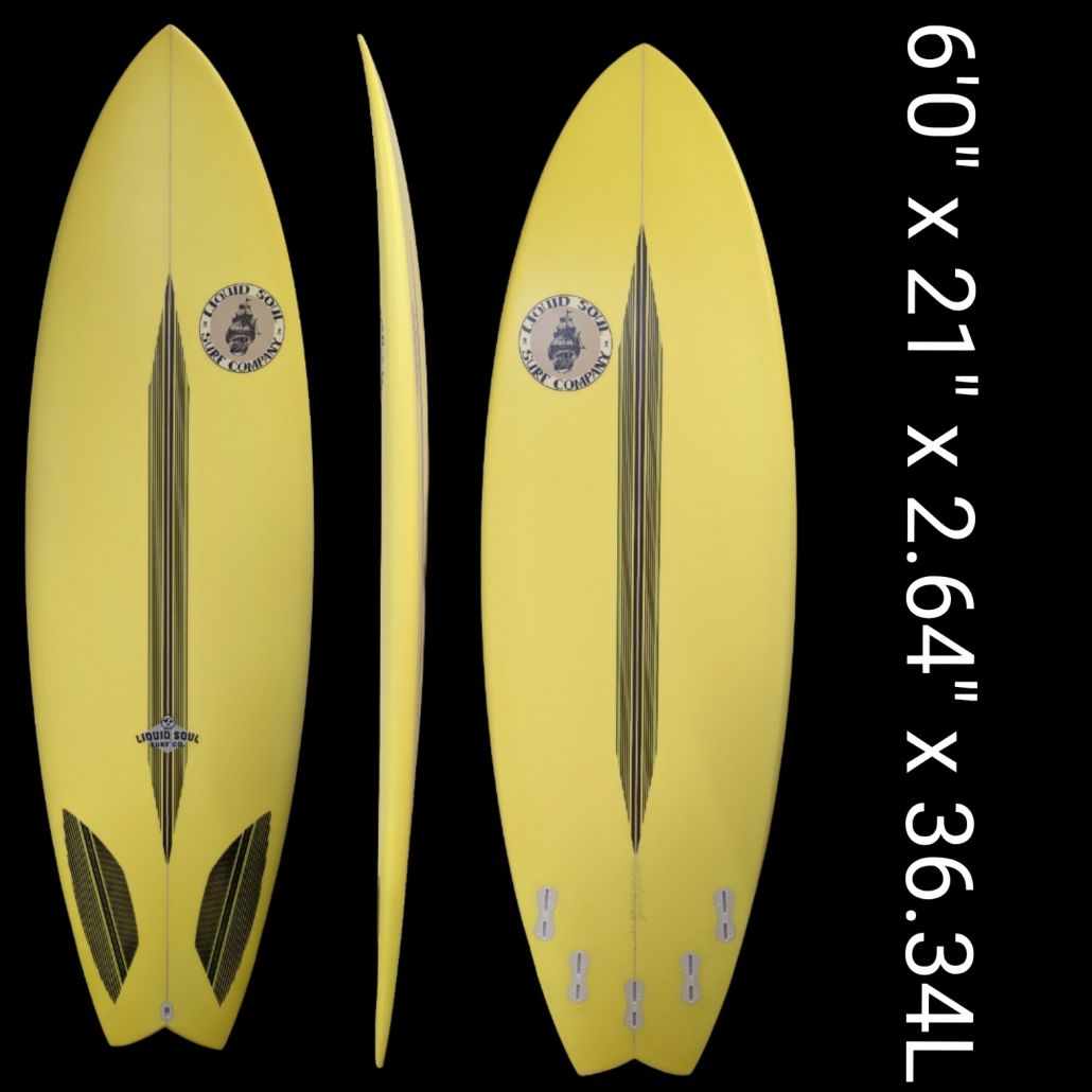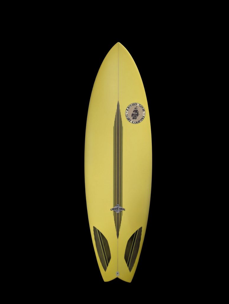 Liquid Soul performance has moderate rocker throughout with extra in the nose, wider outline for easy paddling and good for groveling, swallow tail, single to double concave, best in thigh to chest high waves, EPS