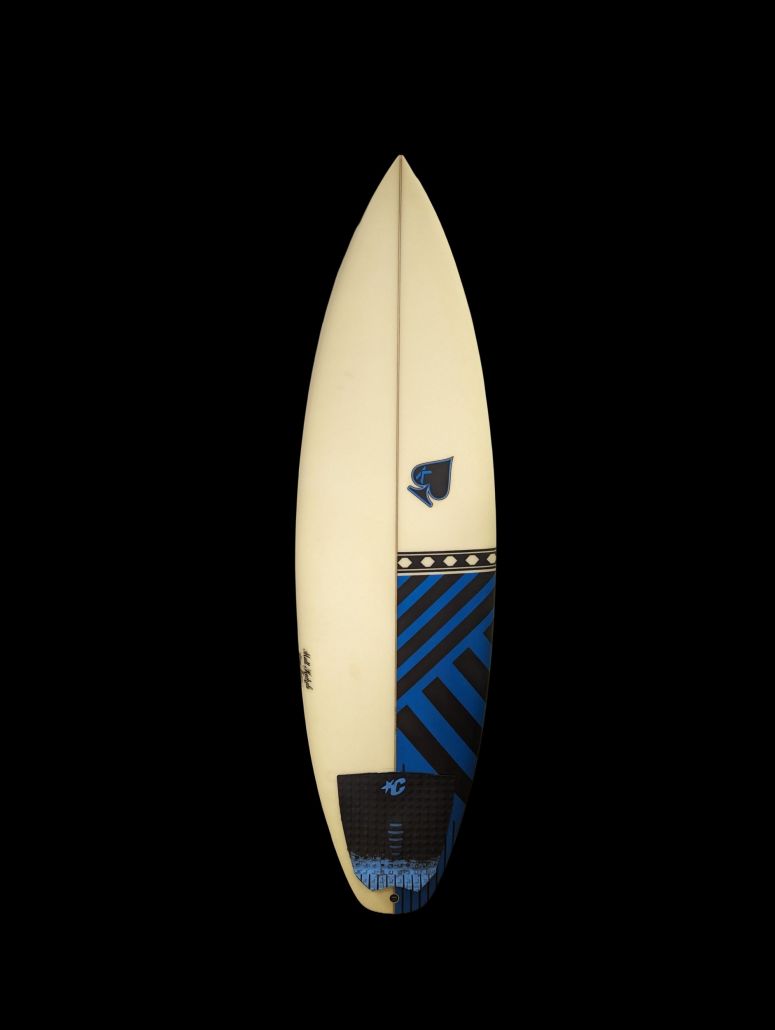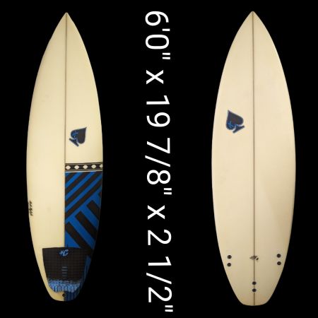 6’0″ Matt Kechele, EPS, Tri FCS Ones (fins included), pulled in tail, single concave, Moderate rocker with more in upper 1/3rd, waves 2-4ft+