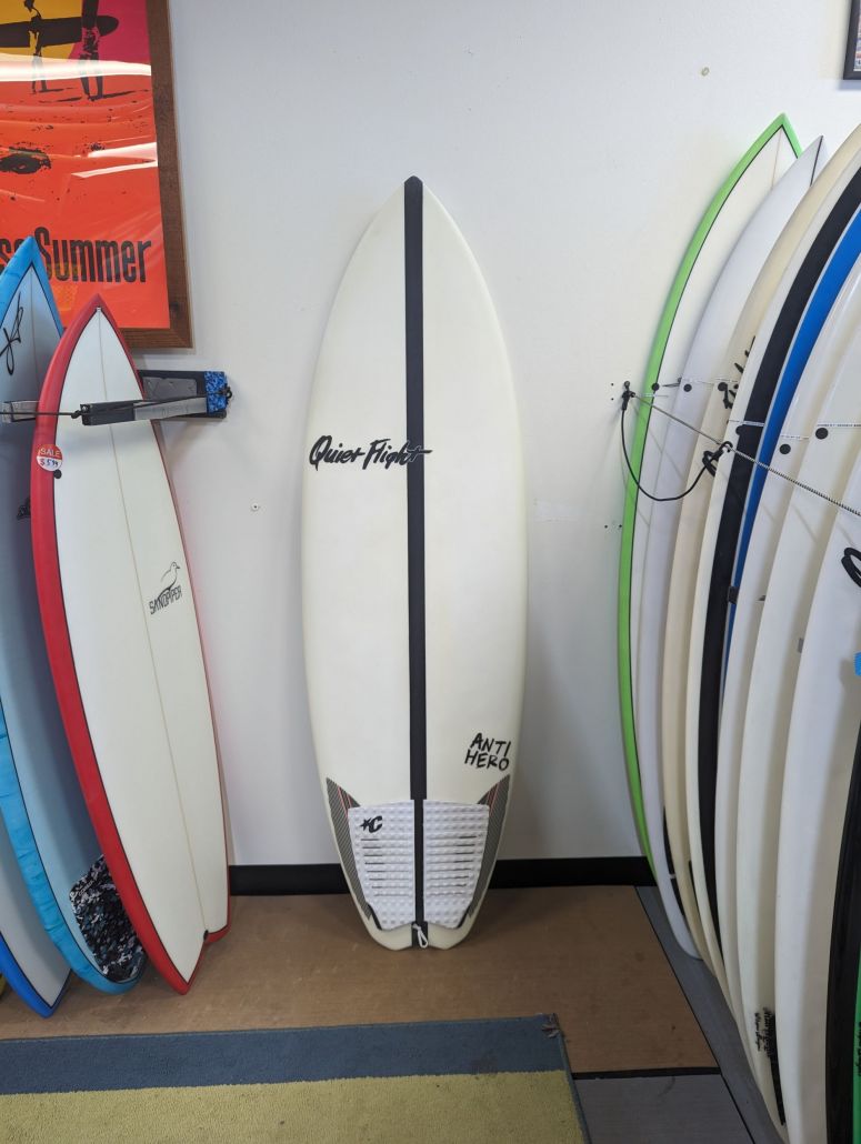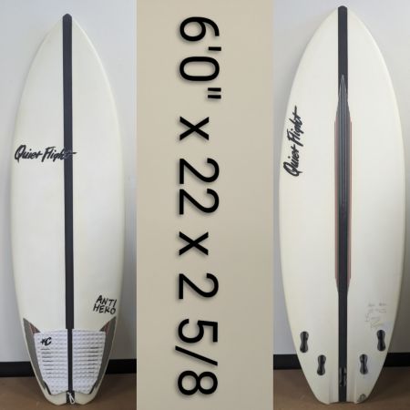 New for 2017, the Quiet Flight Anti Hero is a performance groveller ideal in poor to fair conditions. Its lower entry rocker, wide mid-body, single to slight double concave, and single channel through the center fin are the defining characteristics of the model. They all work together for impressive paddling/wave catching abilities, down the line drive and, and ability to still bite and hold whilst placed in steeper or critical sections of a wave. When sized larger it is ideal for beginners where intermediate to advanced surfers will be riding this model 2-6 inches shorter than a traditional performance shortboard.