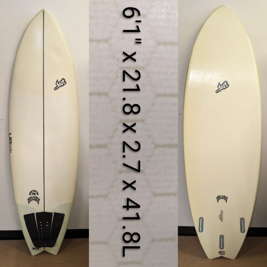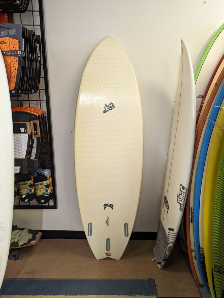 Lost RNF is performance minded inspired by MR’s competitive minded twins of the ’70s and ’80s with relatively pulled in tails designed to rip, not just small surf but in all sizes and shape of waves. Libtech is a unique and advance new construction for surfboards. Their ecoIMPACTO construction is environmental friendly, 25-40% upcycled content and water repellent. Their glassing is also different, being a Bio-matrix Plant Based Resin which is made to be impact resistant. They also add a thermo fusion honeycomb power panel that is super light weight while adding extra strength for impact and ding resistance.