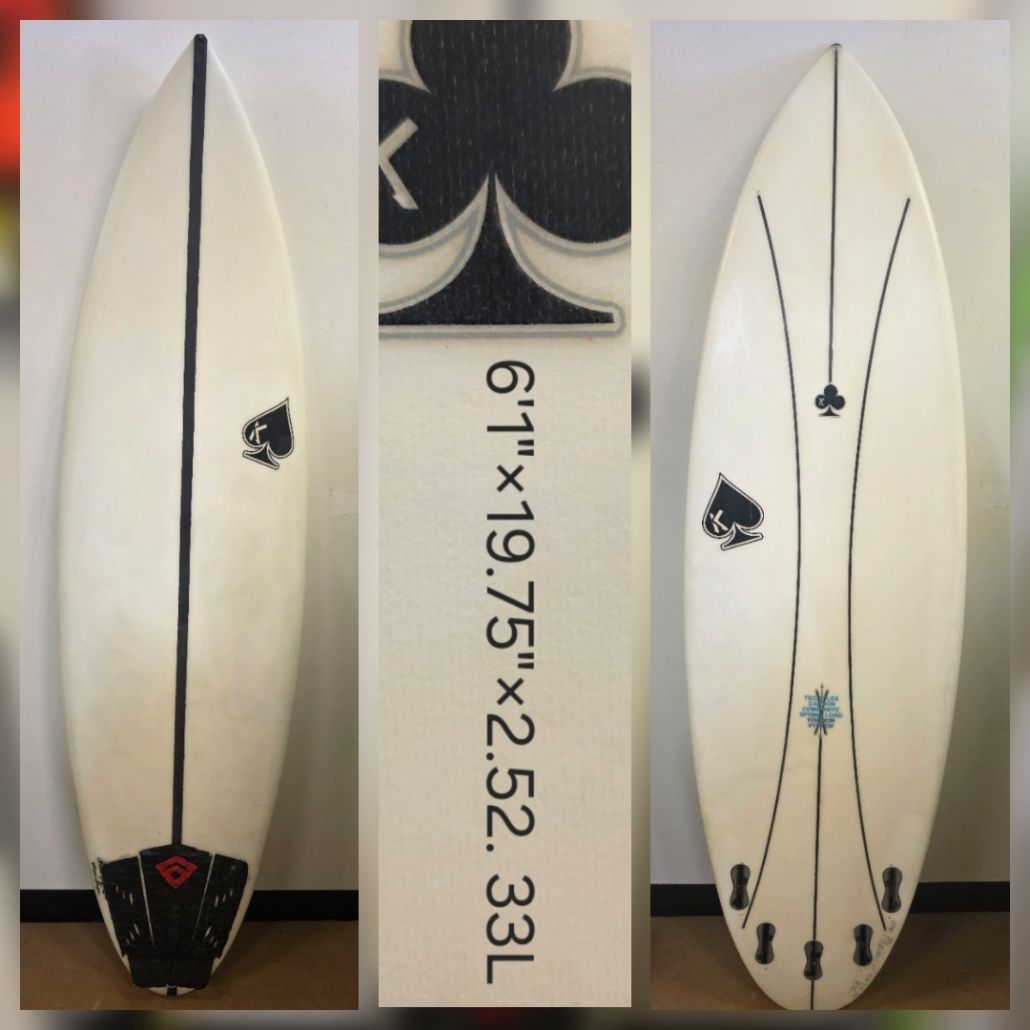 6’1″ Matt Kechle Hybrid, EPS, Double concave, vee off the tail, slightly advanced rocker, Quad/Tri FCS 2 slightly wider outline, waves 3-5ft+