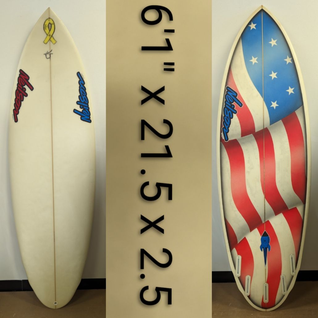 6’1″ Neilson 3x Speed, EPS, Quad/Tri Futures, Single concave, vee off the tail, wider outline, rounded squash tail, waves 2-4ft+