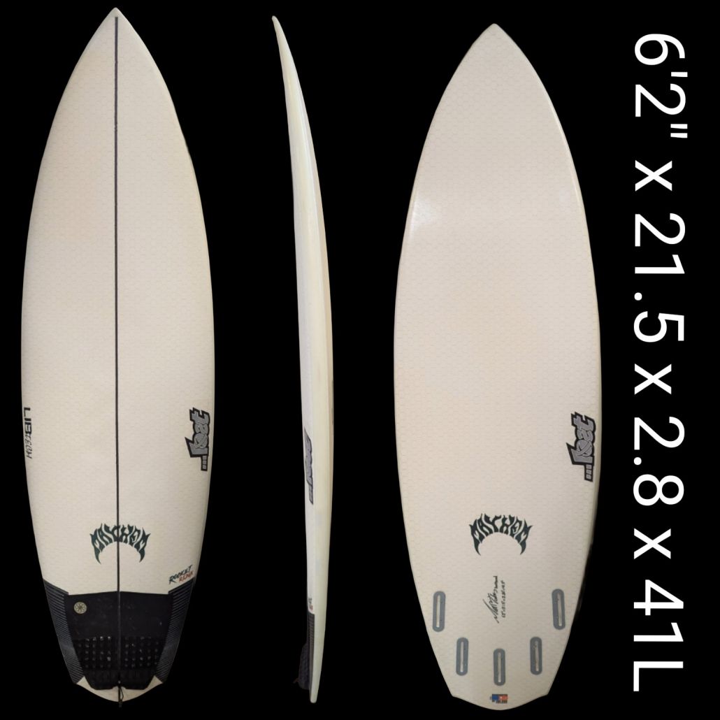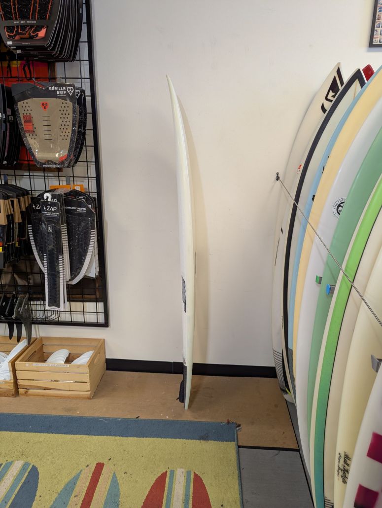 The extremely low and fast entry rocker, counterbalanced by a hyper-extended tail curve, for instantaneous down the line drive and playfully precise turning. The deepest of concaves, created by a straight centerline stringer and a curvaceous rail rocker lends lift and liveliness. The wide tail and parallel, bullet like, outline provides plenty of speed and hold. The hooked diamond “Rocket” tail adds bite and hold in firm, rear footed carves.