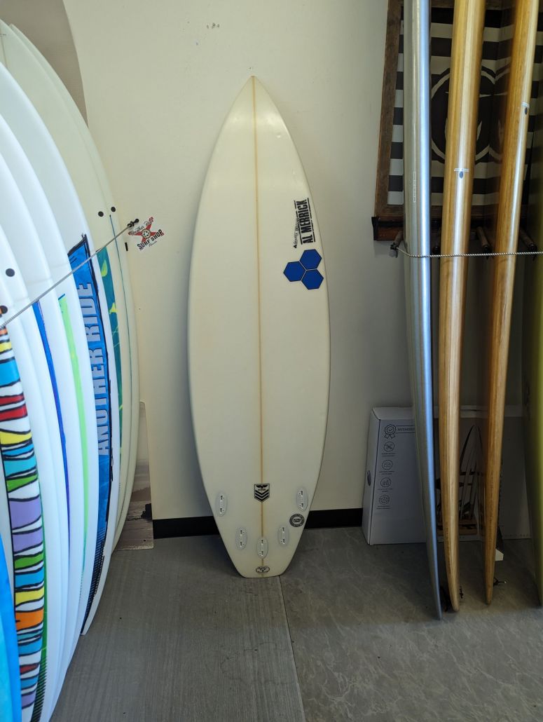 6’2″ CI Flyer , PU, Quad/Tri Futures Fin boxes, Double concave, vee off the tail, rounded squash tail, Waves 3-5ft+ Best as an everyday board in everyday conditions, the OG Flyer has a single concave entry to double through the middle and a vee exit, Al’s signature bump squash, slight down rail, and a subtle nose beak. To be ridden approximately the same length as you are tall.
