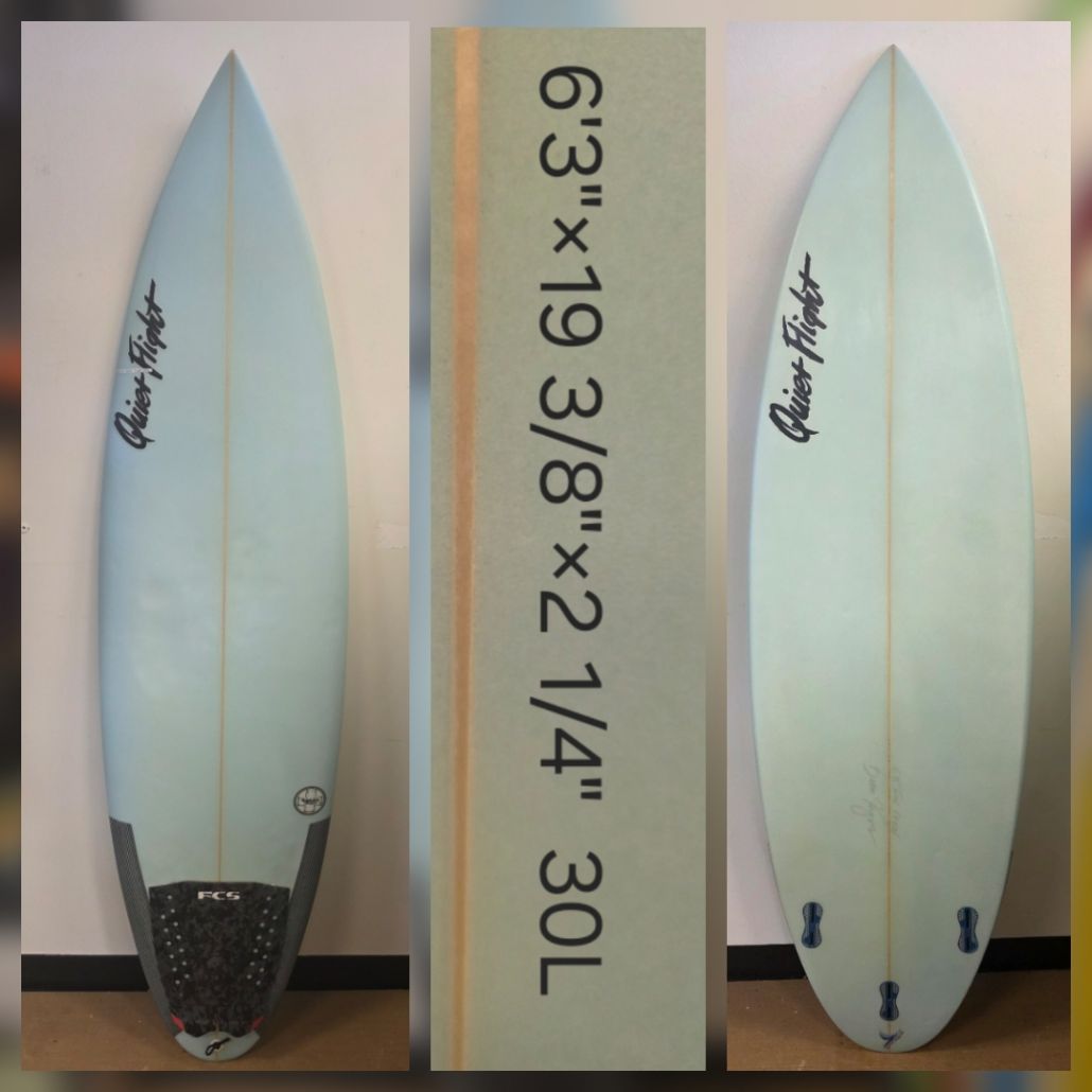 6’3″ QF Step Up, PU, Single concave, Slight vee off the tail, Tri FCS 2, slightly wider outline, Round tail, Waves 3-5ft+