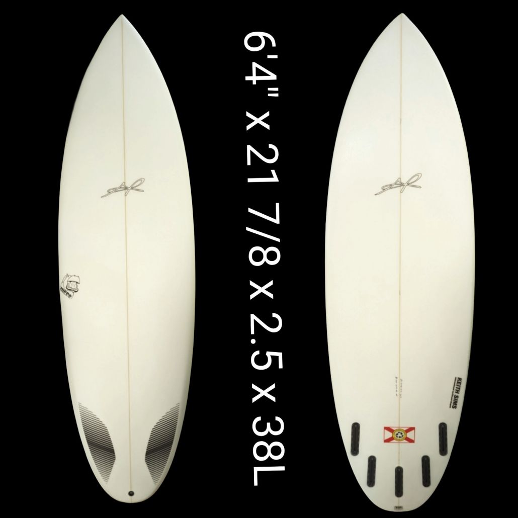 6’4″ AR Hippo, Single Concave, vee off the tail, round tail, Very light, Quad/Tri Futures, If your looking to get better at surfing this is the board for you with the bigger and wider outline for more stability and also a rail reduction on the tail for sharper/more controlled turns.