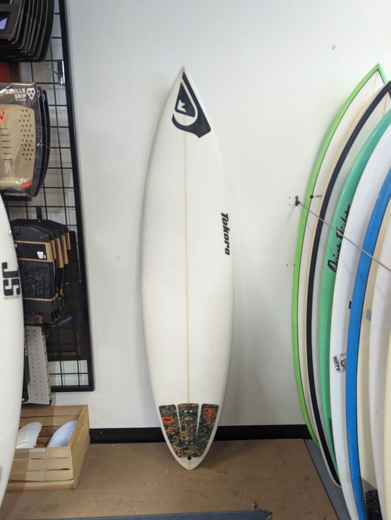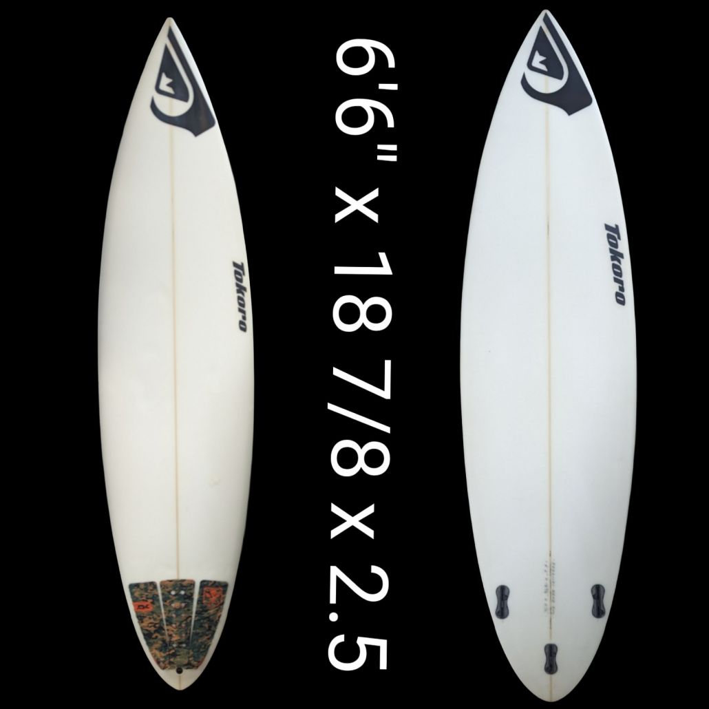 6’6″ Tokoro Gun, narrower outline, Pin Tail, PU, Tri FCS 2, single concave, Slight vee off the tail, Waves 4-6ft+