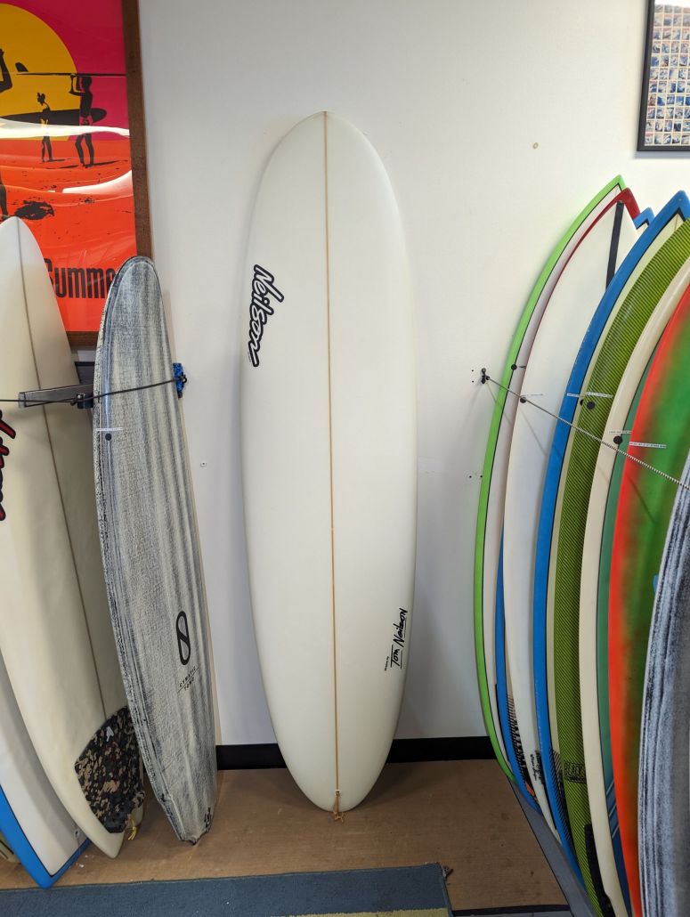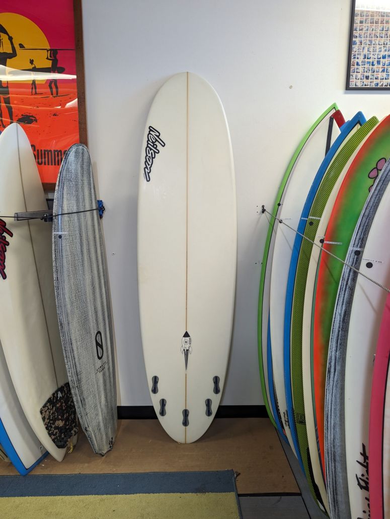 7’0″ Neilson 3x Speed, PU, round nose, round tail, flatter rocker, quad/tri FCS 2, single concave, flat off the tail, waves 2-4ft+