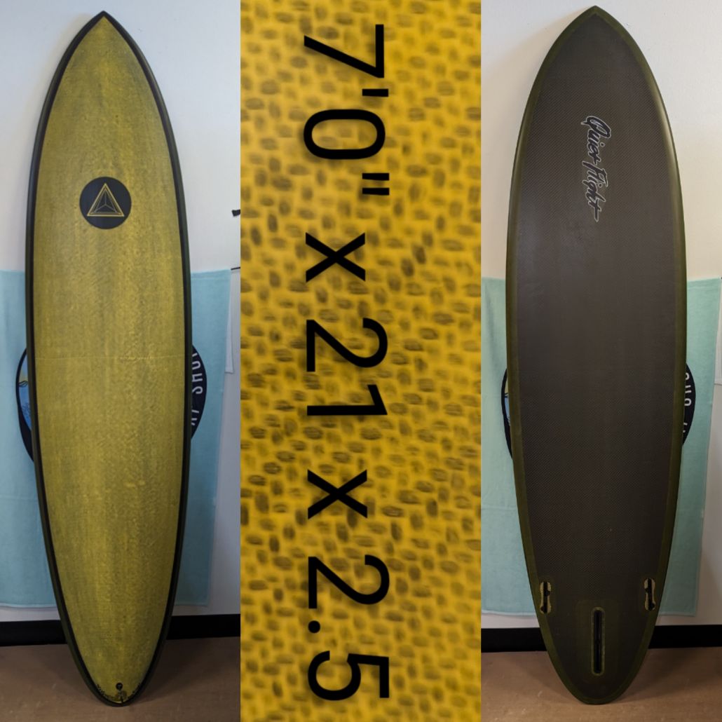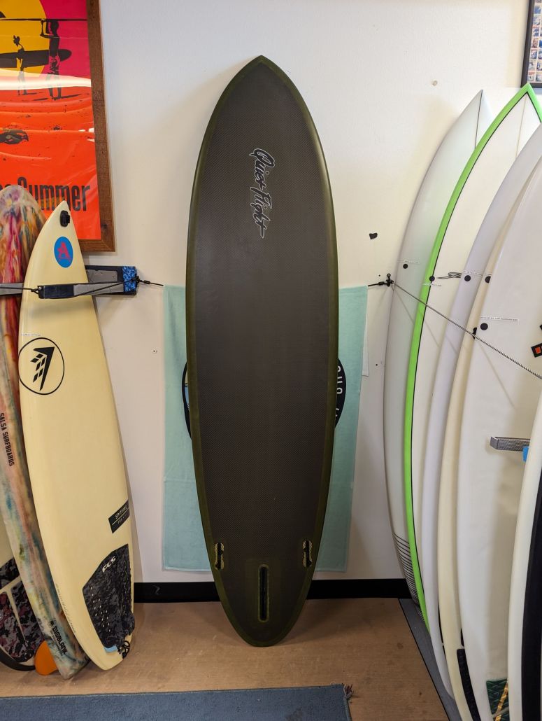 7’0″ QF, Funshape, Carbon Fiber glass, EPS core, 2+1 FCS 2 fin boxes, little bit wider outline, round tail, single concave, flat off the tail, moderate rocker, waves 2-4ft+