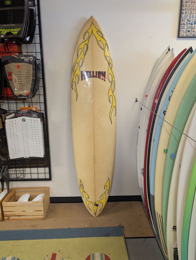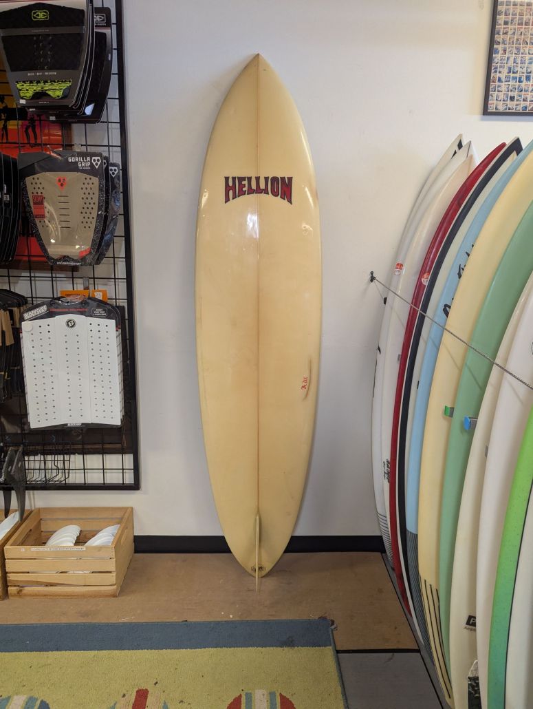 Hellion Midlength, PU, Single Glass In Fin, Narrow Tail, Wider Nose, Moderate Rocker, Thinner rails, Pin Tail, Waves 2-4ft+