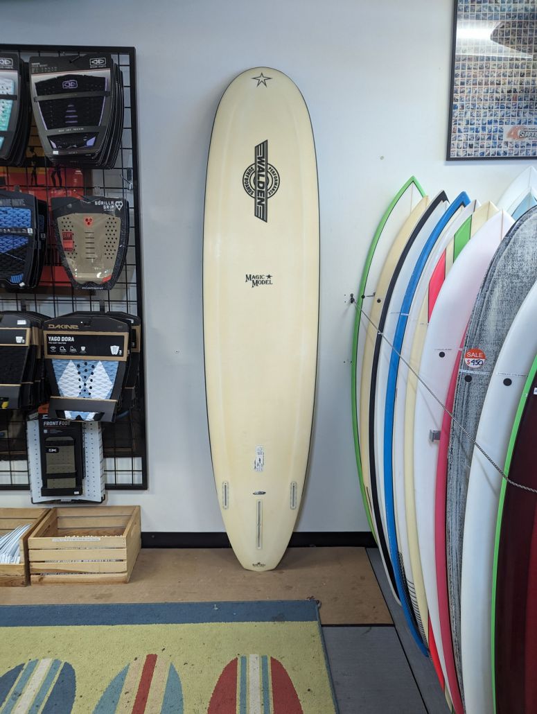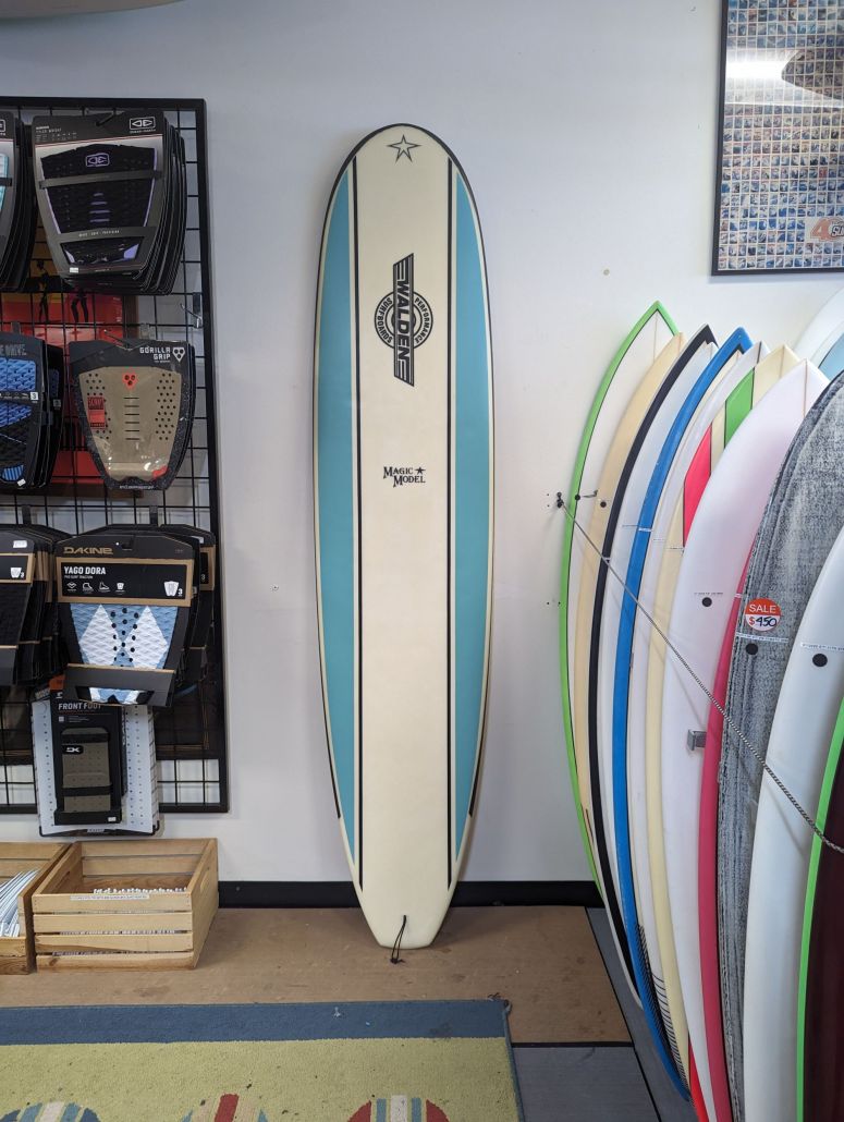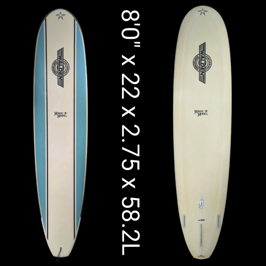 The Magic rocker, Magic rails, and the Magic hull are unique to Walden Surfboards, the front 1/2 of the hull is concave, this single concave transitions into a double concave in the rear, and the back 1/3 transitions into a moderate “V”. The concave nose adds lift and stability, perfect for noseriding. The double-concaved hull and hard rails make the board fast, stable, responsive, and maneuverable in all conditions. The Magic rails are hard, they tend to be harder than most other longboards, the unique bottom curves & bevels keep the rails from catching, unlike most other hard rail boards. Waves 3-5ft+