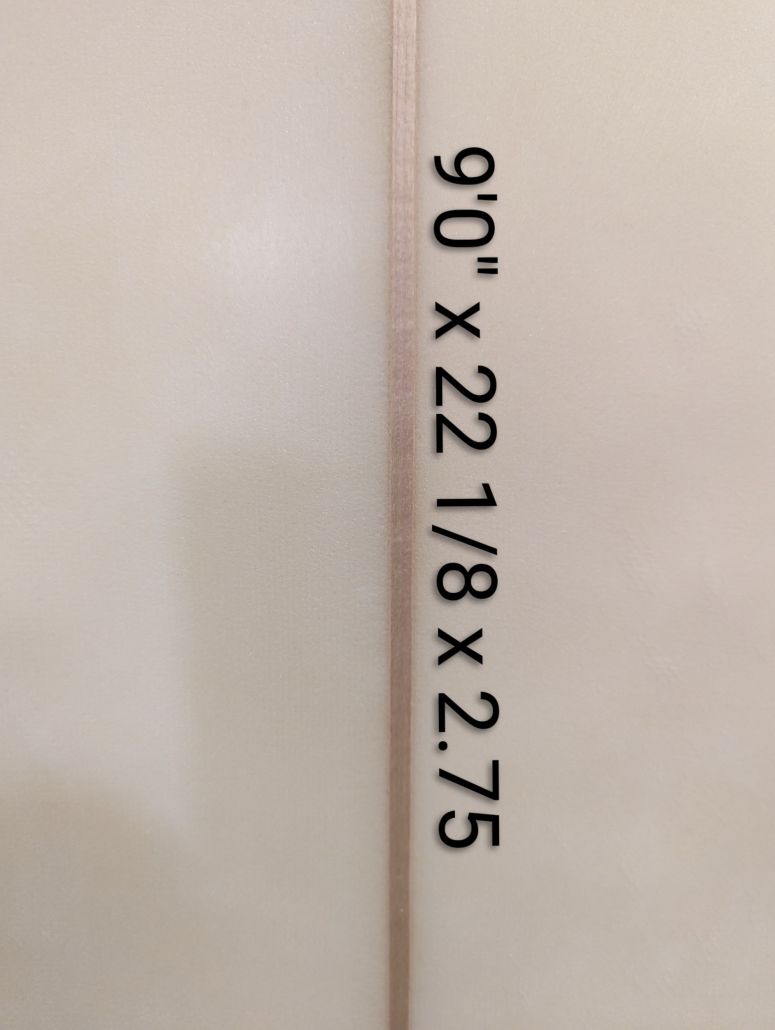 9’0″ Coda Longboard, EPS, Rounded Nose, Pulled in tail, 2+1 FCS 1, single concave, slight vee off the tail, waves 1-3ft+