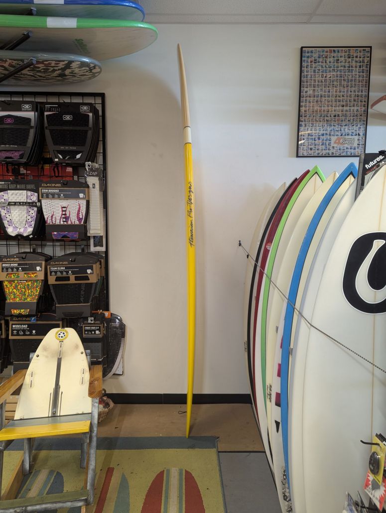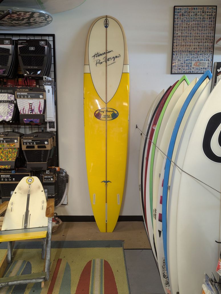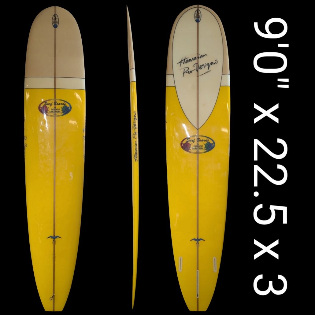 9’0″ Donald Takayama Longboard, PU, 2+1 Futures, Pocket in the nose Wider nose, Narrower Tail, waves 1-3ft+