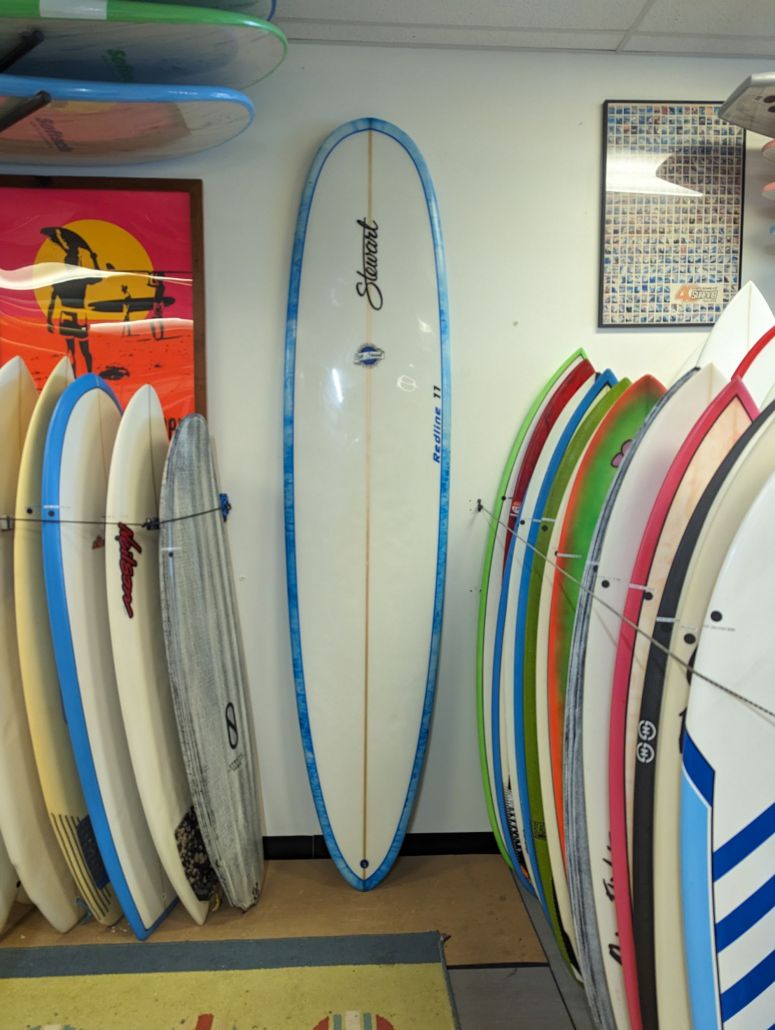 9’0″ Stewart Longboard, PU, 2+1 Futures, Single concave, small vee off the tail, small pocket in the nose, wider outline, flatter rocker, waves 1-2ft+