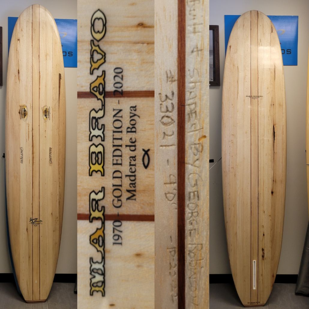 This is a real deal chambered balsa wood longboard by the master George Robinson amazing ride and look strong construction superior glassing gloss polish finish weight is 23.4 pounds